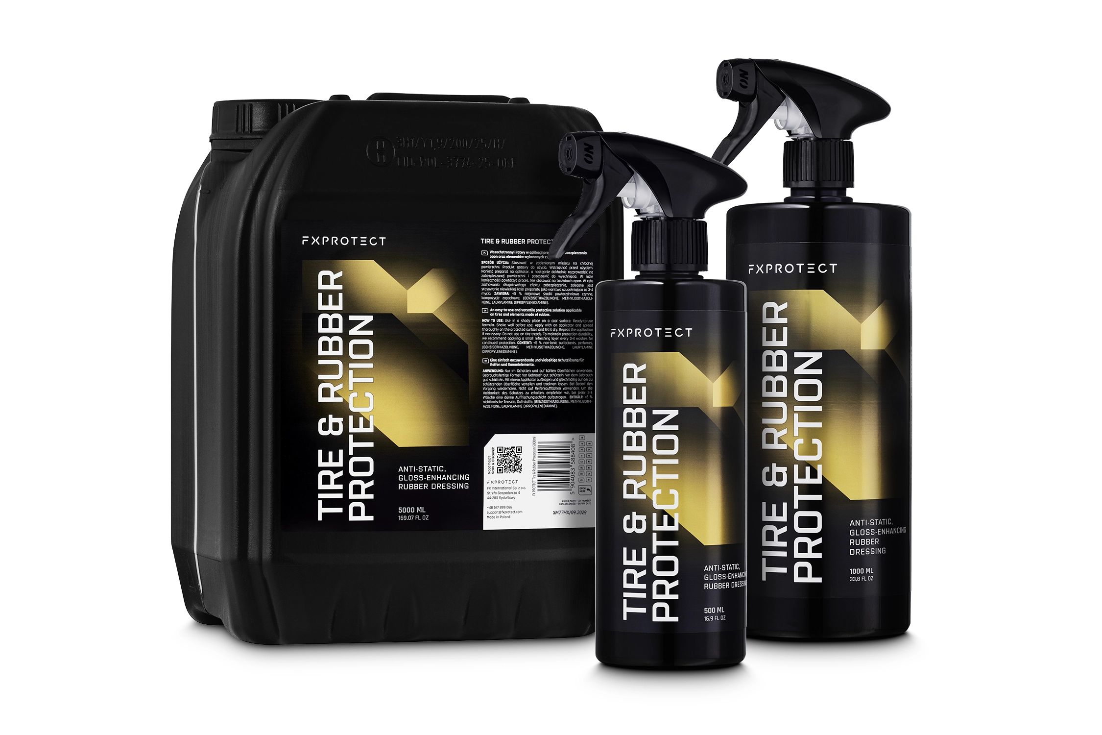 FX Protect Tire & Rubber Protection crée une couche qui protège contre les intempéries et la pollution routière. Un mélange velouté d'huiles de noix de coco et de polymères soigne et protège les surfaces en caoutchouc et leur confère des propriétés antistatiques, hydrophobes et satinées. Le produit est efficace et simple d'utilisation.